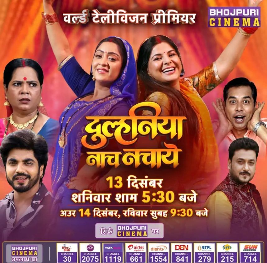 भोजपुरी सिनेमा पर 13 दिसम्बर की शाम 5.30 बजे और 14 दिसम्बर की सुबह 9.30 बजे फिल्म ‘दुल्हनिया नाच नचावे’ का वर्ल्ड टेलीविजन प्रीमियर हुआ। इस फ़िल्म में मनोज भावुक के गीतों ने लोगों का मन मोह लिया है। फिल्म का टाइटल गीत ‘ दुल्हिनिया नाच नचावे’ लोगों के जुबान पर है। ‘ बेटी खातिर कवन घर आपन ‘ इतना मार्मिक है कि लोगों की आँखे भर जाती हैं। ‘हम जेठानी, तू देवरानी’ और ‘ बनल रहे सुहाग’ जैसे पारिवारिक मूल्य वाले गीत भी अच्छे बने हैं।