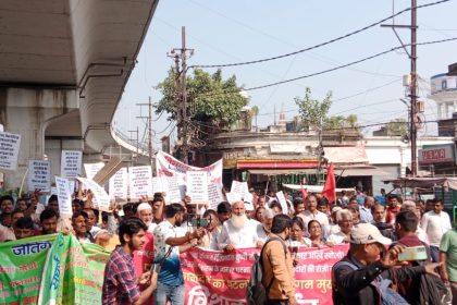 पटना नगर निगम मुख्यालय पर फुटपाथ दुकानदारों का विशाल प्रदर्शन