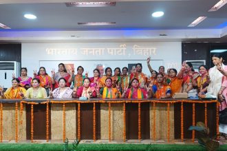 बिहार भाजपा महिला मोर्चा ने प्रदेश कार्यालय पर बाजे-गाजे के साथ मनाया उत्सव