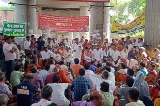 पटना नगर निगम की तानाशाही के खिलाफ फुटपाथ दुकानदारों का जीपीओ गोलंबर पर महाधरना